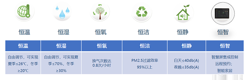 這三個項目均是以六恒(恒溫、恒濕、恒氧、恒潔、恒靜、恒智)技術為核心的綠色科技生態住宅,基于溫濕度獨立控制技術,通過采用高效外圍擴結構、高效的設備系統、置換式新風、智能控制等科技生態技術,在室內空氣品質、溫濕度、聲、光等方面追求更高的舒適感受,達到綠色、健康、智慧的居住目的。